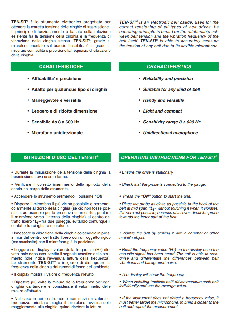 TEN-SIT® 2.0是一种新的电子张力测量仪,用于各类皮带传动的适当张紧。其操作原理是基于皮带张力和皮带本身的振动频率之间的关系。